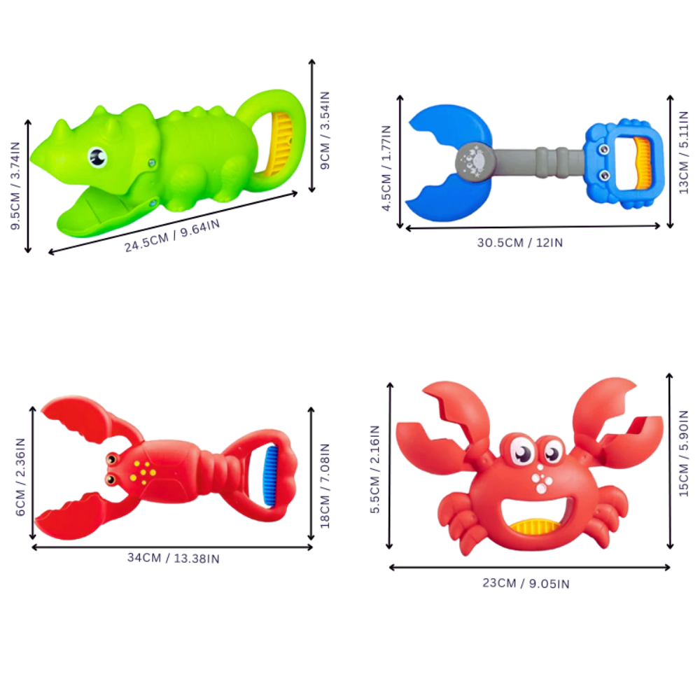 GripSafari grabbers are specially designed for young hands, making them easy to squeeze and control. Children can pick up sand, shells, toys, and treasures while pretending to be explorers on a safari adventure. The simple claw action keeps play intuitive, engaging, and frustration free.