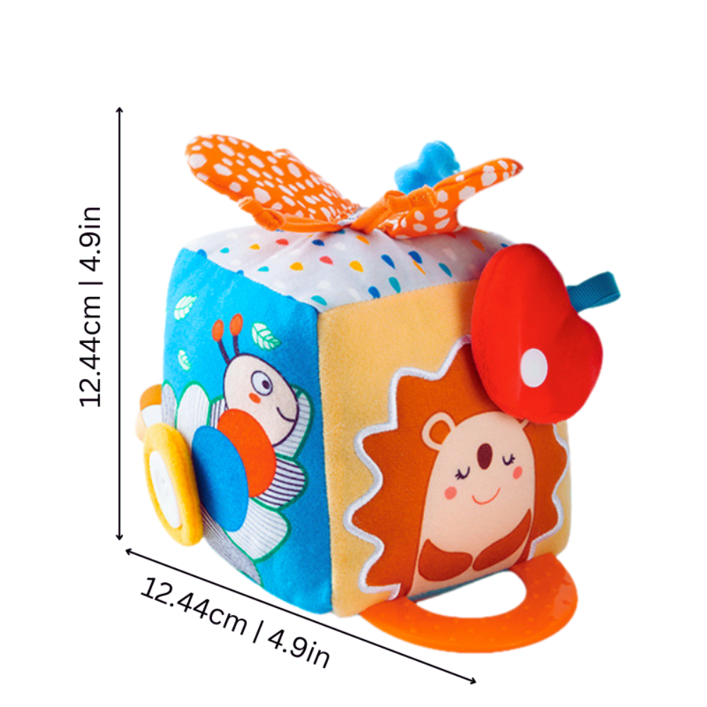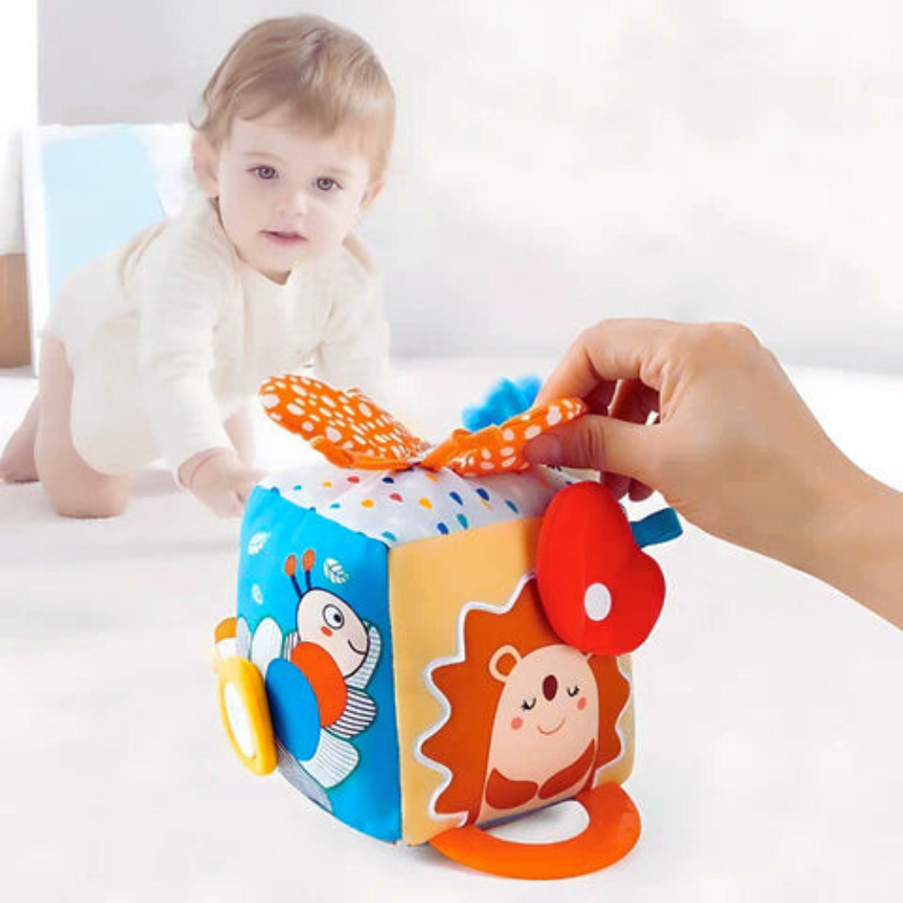 Delight little hands and growing minds with SnuggleCube, a soft sensory activity cube designed to encourage curiosity, hands on learning, and early skill development through gentle textures, playful features, and interactive discovery.
