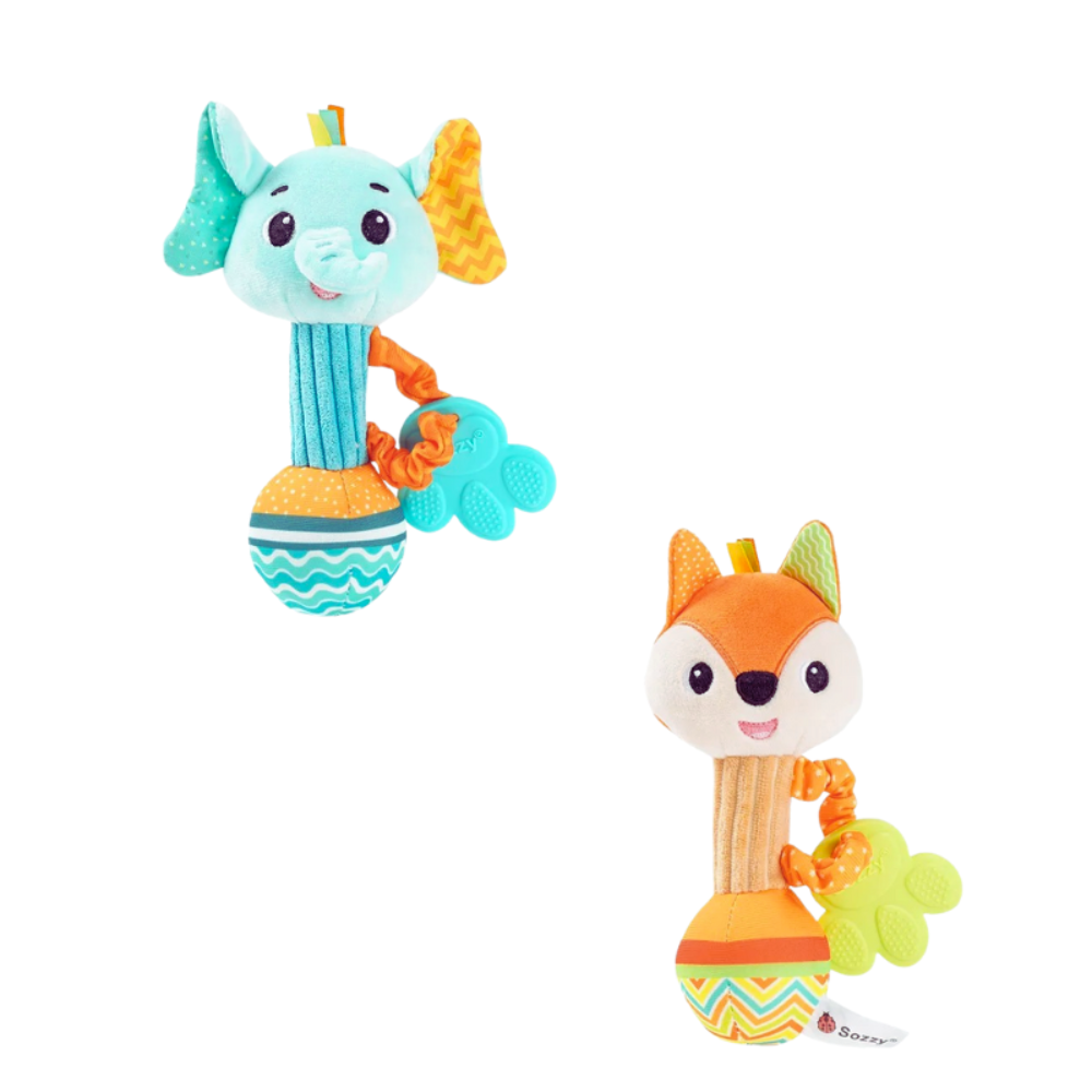 Delight your baby’s senses and support early development with SnuggleRattle, a soft and comforting pair of animal themed rattles designed to encourage grasping, shaking, and joyful discovery during playtime, rest time, and every cuddle in between.
